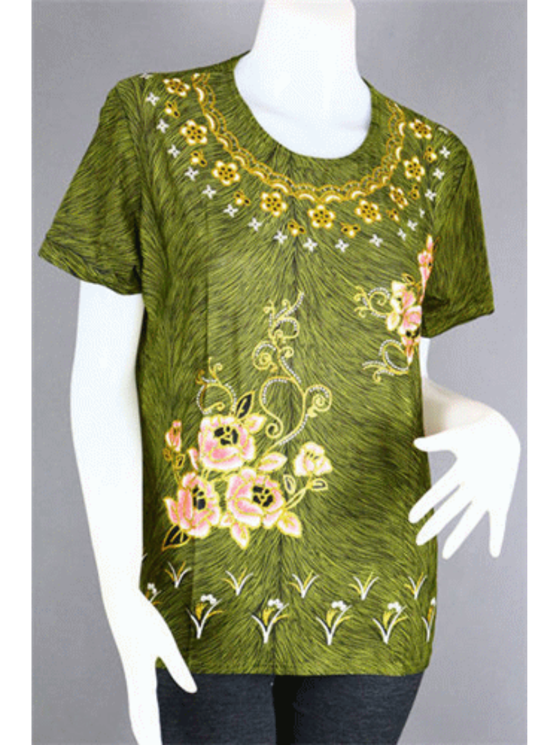 เสื้อผ้าพิมพ์ลายดอกไม้ รอบอก 36 – 40 นิ้ว ความยาว 24 – 25 นิ้ว ขายคละสี